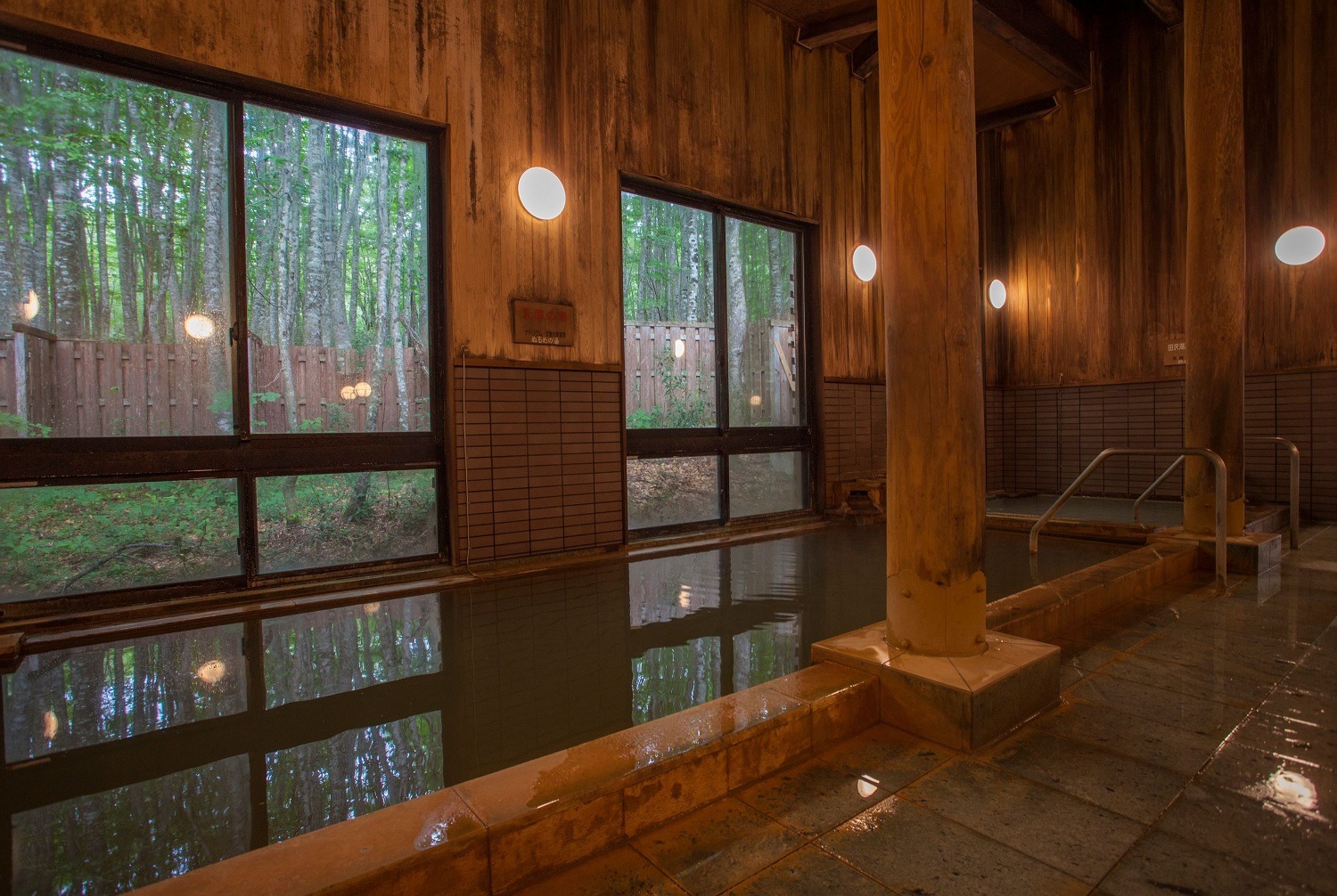 温泉郷で最も近代的な施設を持つ『休暇村乳頭温泉郷』も、2種類の源泉から湯を引いています。湯はそれぞれに広い湯船をなみなみと満たし、湯浴みを求める人々をあたかかく迎えてくれます。