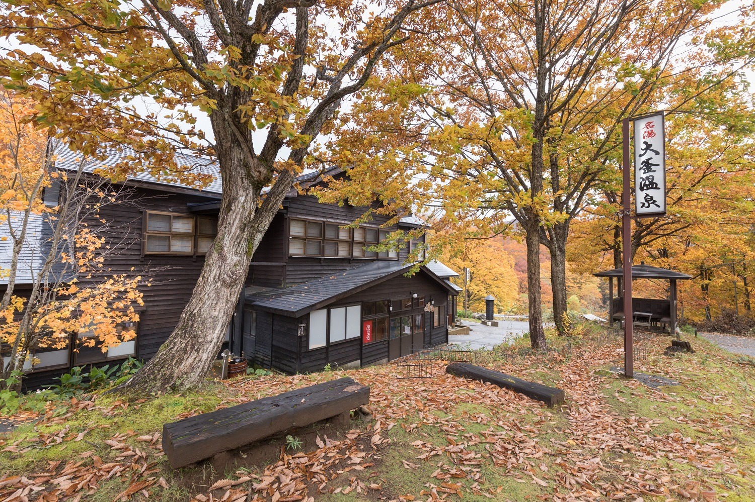 たとえば前述の『鶴の湯温泉』は、江戸時代、秋田藩主の湯治場だった由緒ある温泉です。藩主を警護する武士が詰めた茅葺き屋根の長屋「本陣」が残っており、昔ながらの部屋に宿泊することが可能です。温泉郷随一の温泉湧出量を誇る『黒湯温泉』も、江戸時代から湯治場として親しまれた歴史ある宿です。茅葺き・杉皮葺き屋根の宿舎や湯小屋が寄り添うように軒を連ねる様子は、昔ながらの湯治の風情そのもの。また、小学校の木造校舎を移築した『大釜温泉』の建物もユニーク。