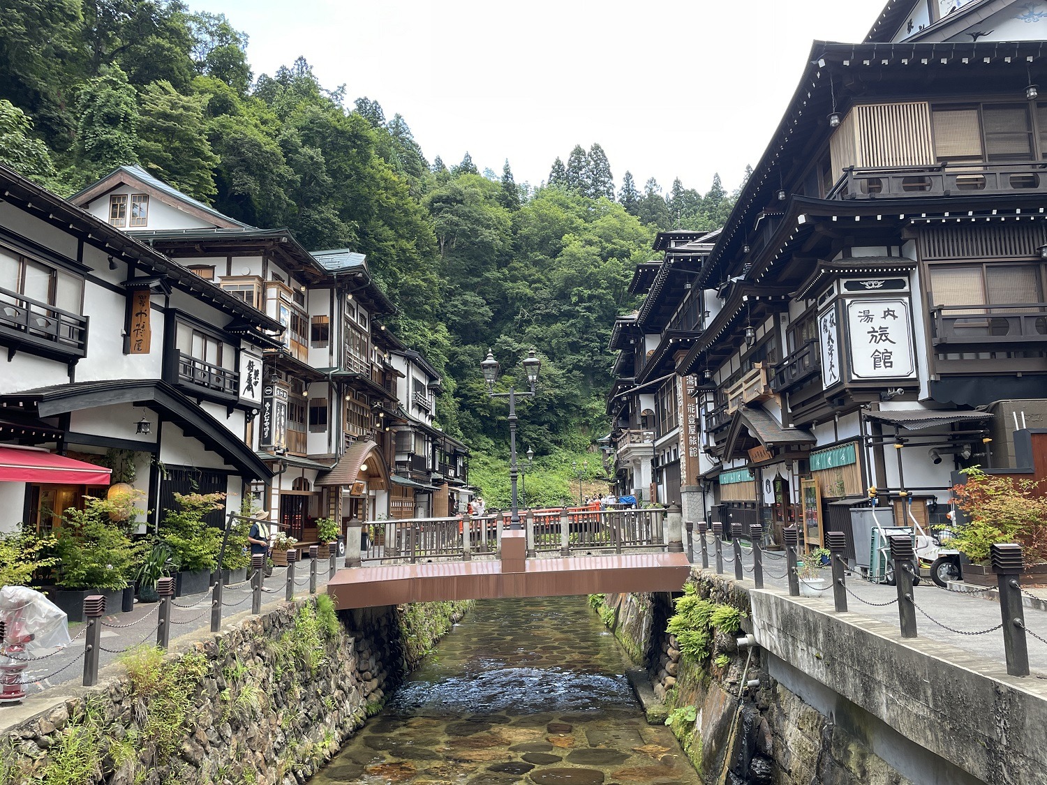 宮城県との県境に近い山形県尾花沢市、奥羽山脈の山あいにひっそりとたたずむ『銀山温泉』には、その特別な景観を一目見ようと国内外から多くの観光客が訪れます。この温泉地を特別たらしめるのは、およそ100年前に完成した建物が立ち並ぶノスタルジックな街並み。銀山川の両岸、300mほどの距離に日本と西洋の様式が融合した3~4階建ての木造建築群がひしめき、まるで映画の世界のように非日常の趣をたたえています。