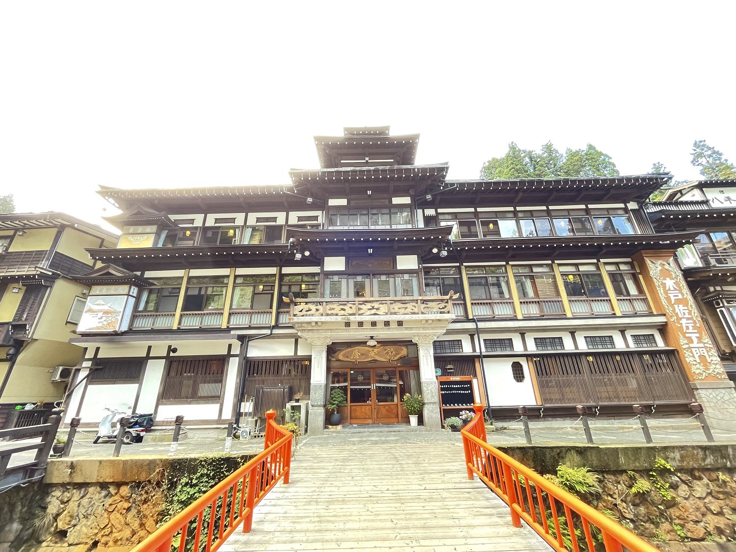 宿泊をする際は、温泉街にある13軒のお宿から選べます。なかでも『銀山温泉』を代表する景観として親しまれるのが『能登屋旅館』。大正10(1921年)に完成した木造3階建ての建物は、国の登録有形文化財に登録されています。木のぬくもりに歴史を感じさせる、館内の見所も多いお宿です。