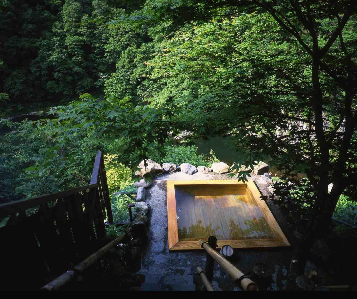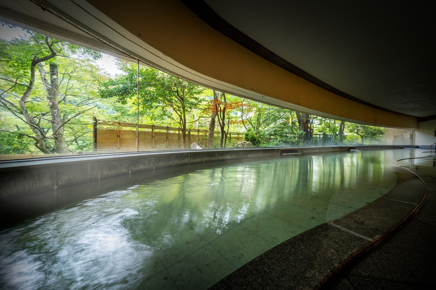 また長さ約30mの湯船に浸かり、総ガラス張りの窓から雄大な渓谷を一望する『本館丸峰』の渓流展望風呂や、川面と山々の絶景がすぐ目の前に広がる『渓山』の貸切露天風呂などでは、ダイナミックな眺望と開放的な湯浴みを楽しむことができます。