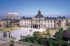 大正5年竣工の県庁舎と県会議事堂の2棟からなるレンガ造りの英国近代復興様式建築で国重要文化財です。現在は県郷土館として一般公開されています。