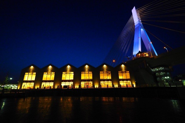 2011年度にグッドデザイン賞を受賞した建物は、青森ベイブリッジとのコラボレーションが美しく、夜のライトアップ時には幻想的な景観を作り出します。