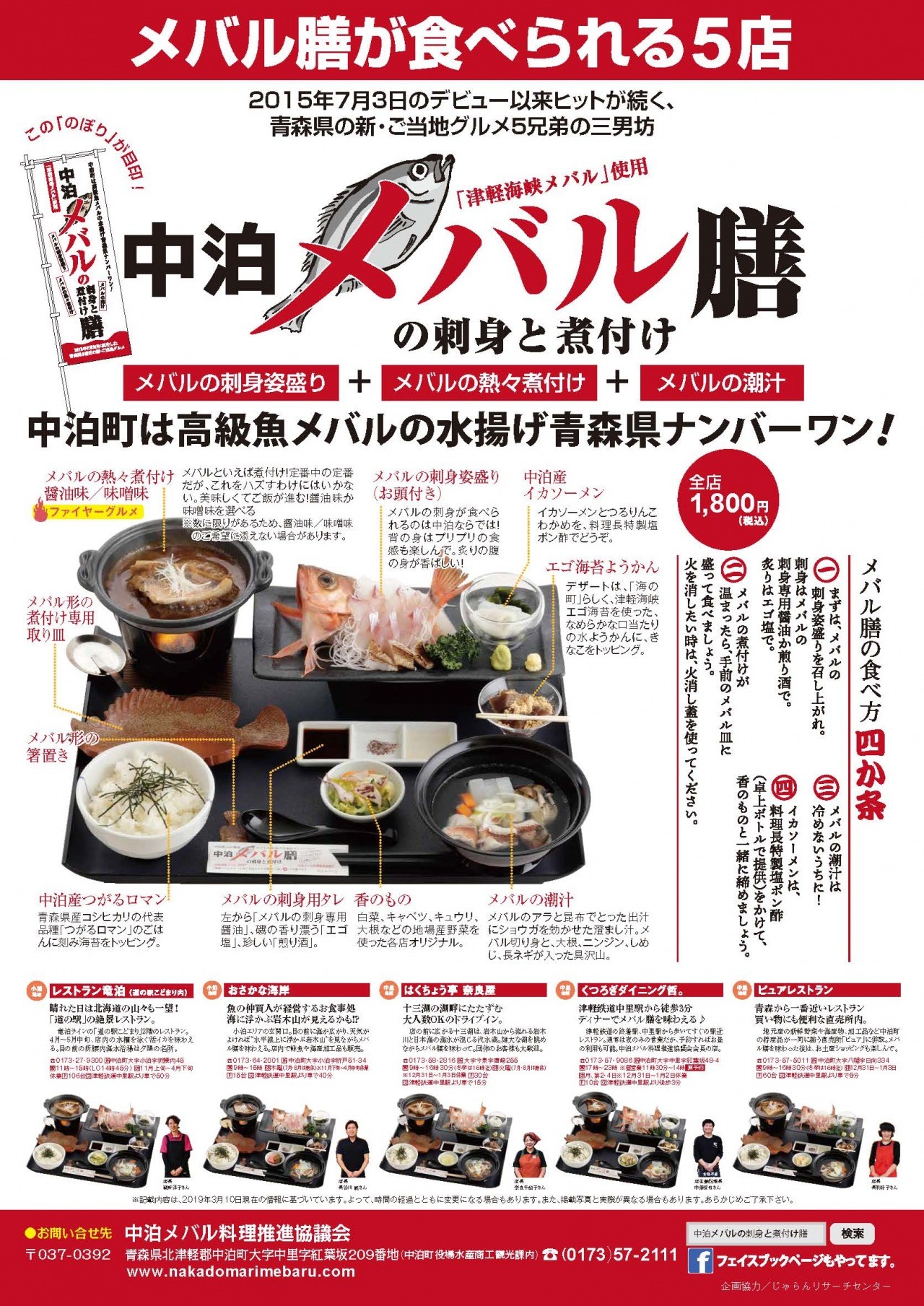 なかどまりめばるのさしみとにつけぜん(なかどまりめばるりょうりすいしんきょうぎかい)中泊町は高級魚メバル(ウスメバル)の水揚げが青森県ナンバーワンです。
