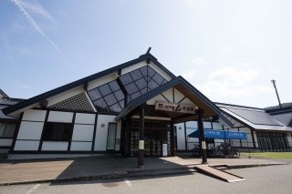 じぇいあーるごのうせんきづくりえきしゃ(つがるし)亀ヶ岡遺跡から出土した遮光器土偶の形をした迫力ある駅舎です。高さ17.3メートル。「しゃこちゃん」の愛称で親しまれ、日中は目が光り列車の到着を教えてくれます。