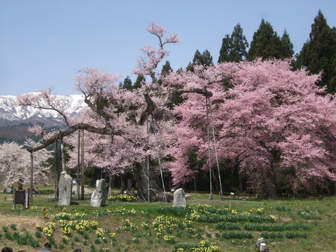 おきたまさくらかいろう南陽市赤湯を起点に長井市を通り、白鷹町荒砥までをつなぐ43kmの「置賜さくら回廊」には、「日本さくら名所100選」で知られる「烏帽子山千本桜」を起点に、国指定天然記念物の「伊佐沢の久保ザクラ」や「草岡の大明神ザクラ」、県指定天然記念物の「薬師ザクラ」などの樹齢500年、1000年余の古木や名木、名所20か所が点在します。平成6年(1994年)にルートが設定され、置賜さくら回廊の桜は、それぞれ保存会によって大切に守り育てられています。