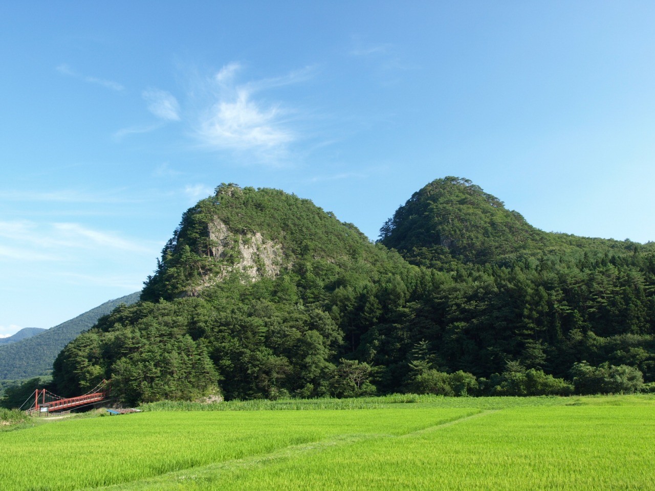 この山には京都祇園の名鼓と、山伏の悲恋の伝説が語りつがれています。