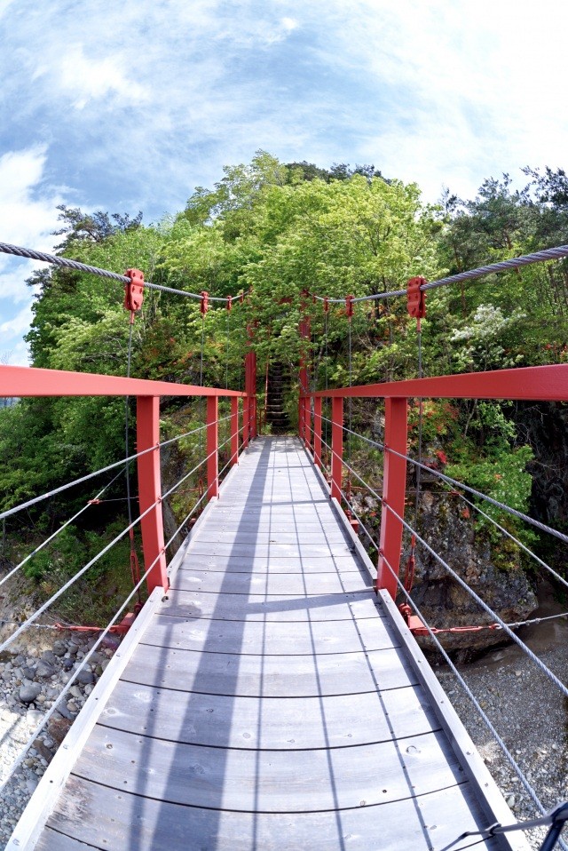 けいせいもり春のつつじ・秋の紅葉が特に美しく、遊歩道も整備されています。駐車場から吊り橋を渡ると約20分で頂上。西に七ヶ宿の町並み、東に七ヶ宿ダム、北に蔵王連邦不忘山を望むことができます。