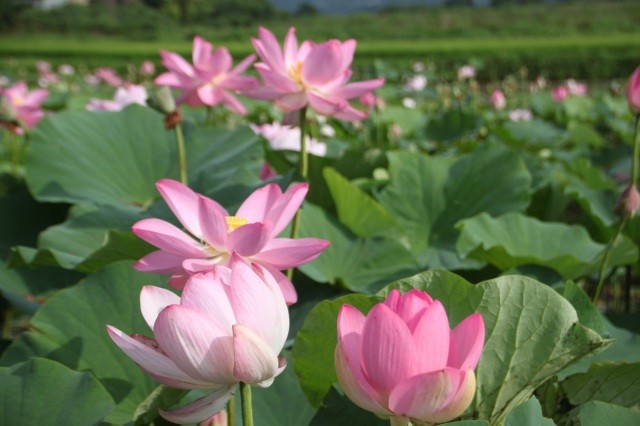 ちゅうそんじはす岩手県平泉町の中尊寺に伝わる藤原泰衡(やすひら)の首桶に納められていた蓮の種から800年の時を経て開花した「中尊寺ハス」。平安の香りを伝えるこの古代蓮は、淡紅色の清楚な大輪が特徴です。2009年に義経ゆかりの平泉中尊寺から贈られて以来、町の団体「一般社団法人二重堀サポートネットワーク」が大事に育てています。7月上旬~8月中旬が見頃です。