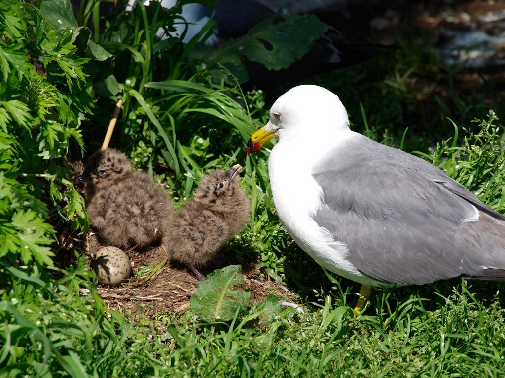 毎年3月上旬頃に蕪島に飛来するウミネコは、4月頃に産卵を始め、6月頃にはヒナが孵ります。そして、8月頃には蕪島を旅立っていきます。