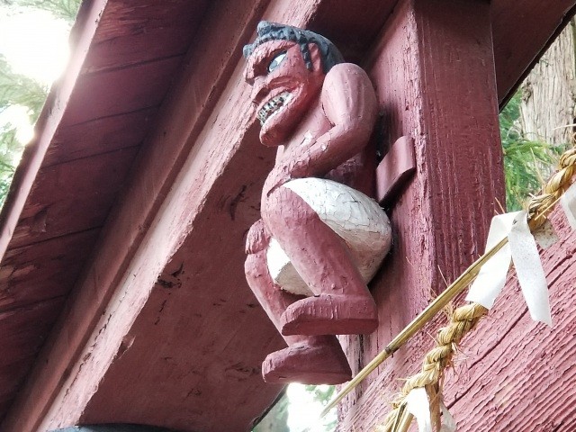 弘前市鬼沢地区には鬼を神様として祀る「鬼神社」、鬼が相撲をとったと言われる「鬼の土俵」があり、節分には豆まきをしません。ぜひ、鳥居の鬼コと一緒に訪れてみてください。「鬼に金棒」ストラップも販売しています。
