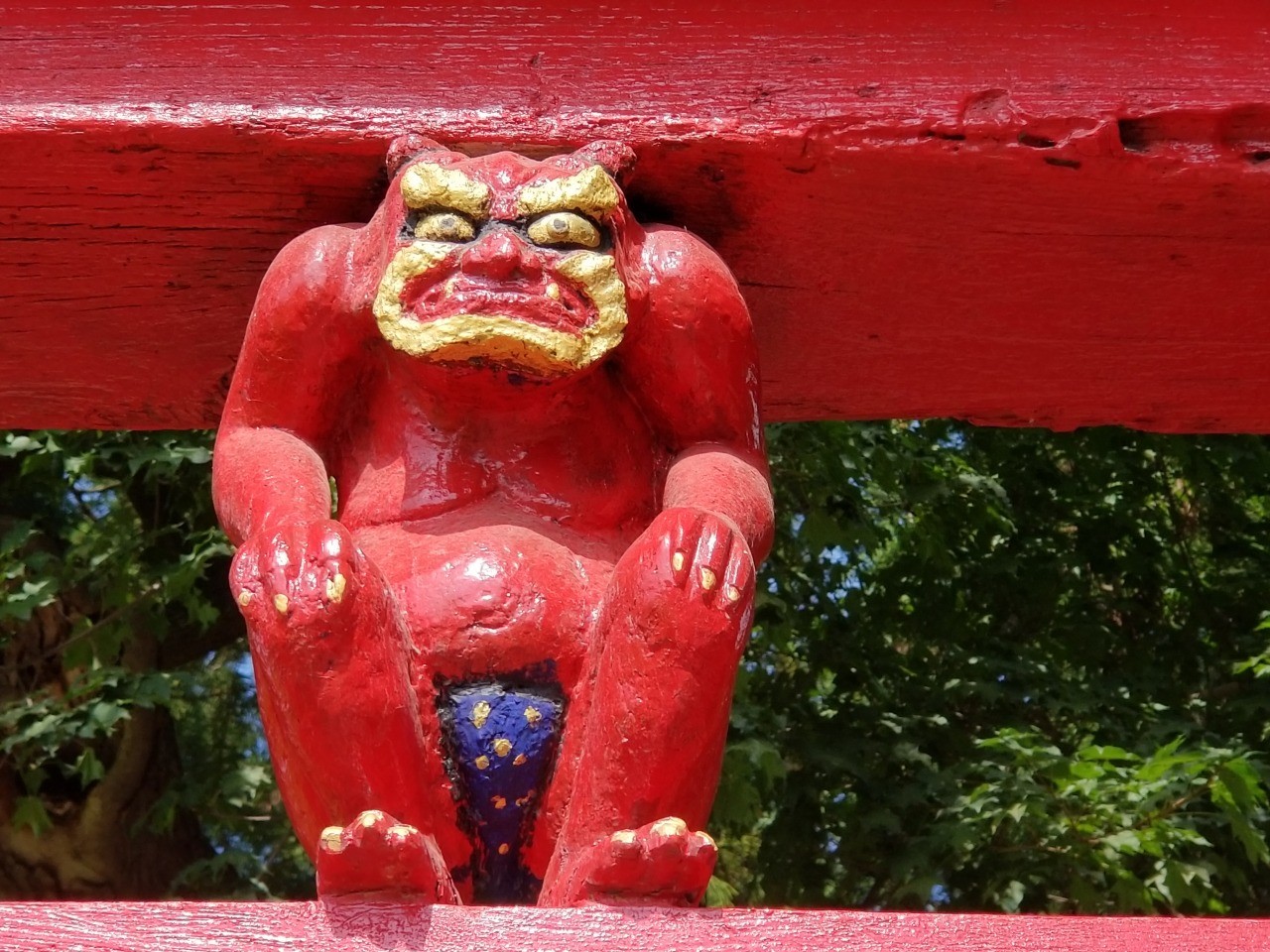 津軽富士・岩木山の裾野の一部の鳥居には、小さな可愛らしい鬼コが座っていて、地域を守り続けています。