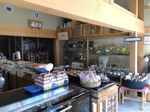 おんかし やまぜん(もりおかちいさなはくぶつかん)工芸菓子の製作工程(生地から型抜き、仕上げまで)をパネルで紹介しております。店内には、御菓子で作られた花や木、鳥などの工芸菓子を30点ほど展示しており、第23回全国菓子大博覧会で全菓博工芸大賞を受賞した「南部花車」は壮観です。素材を吟味した確かな仕事に、四季折々の季節を感じさせる和菓子の魅力を十分に堪能することができます。
