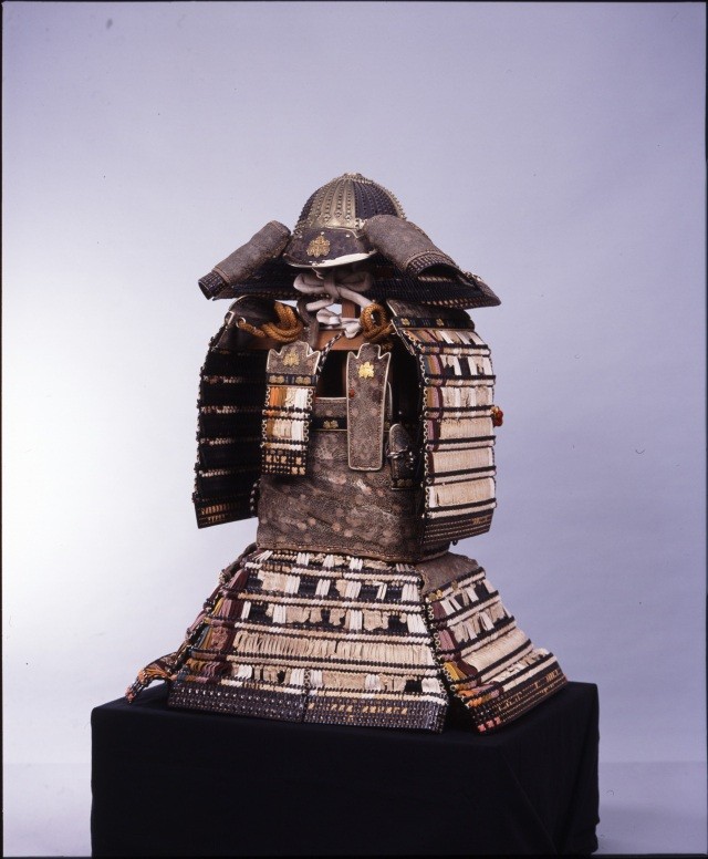 鎌倉時代末期の典型的な鎧で、デザインや制作技法の豪華さにおいて国甲冑の代表例とされ、別名「菊一文字の鎧兜」としても有名です。奈良・春日大社「赤絲鎧兜」と東西双璧とされています。1953年国宝指定。