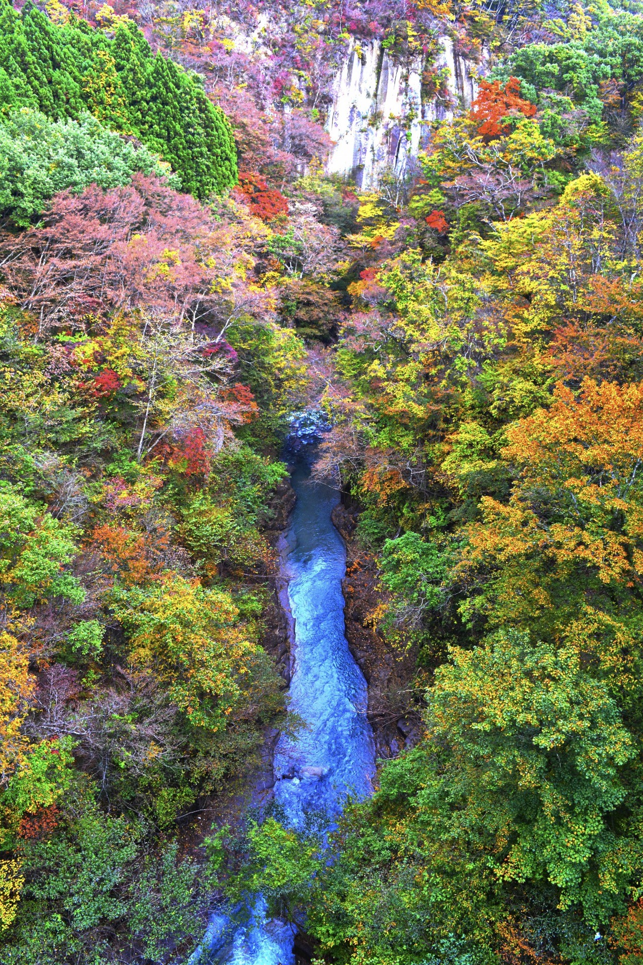 この橋を中心とした約4kmの間は雪割渓谷と呼ばれており、新緑の萌え出る春や一面燃え立つような紅葉の秋は最高です。