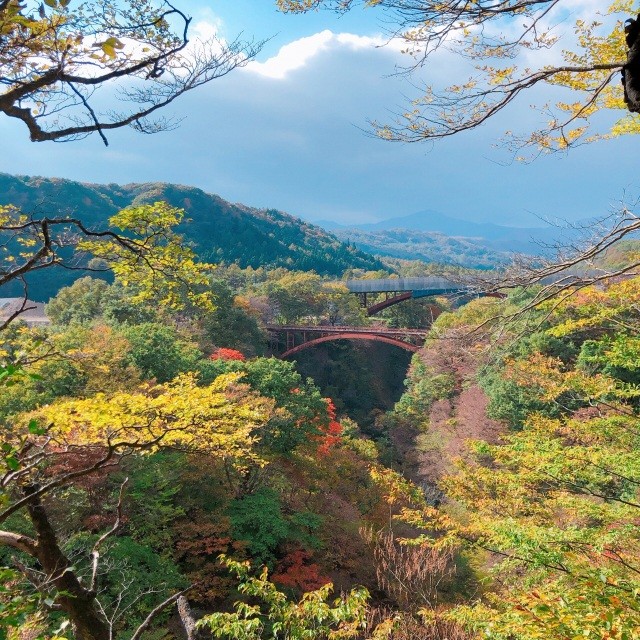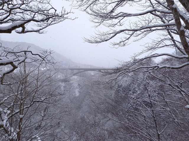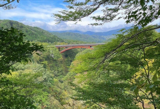 ゆきわりばし阿武隈川の源流に架かるアーチ式の鉄橋で、長さ138m、谷底からの高さは約60mあります。