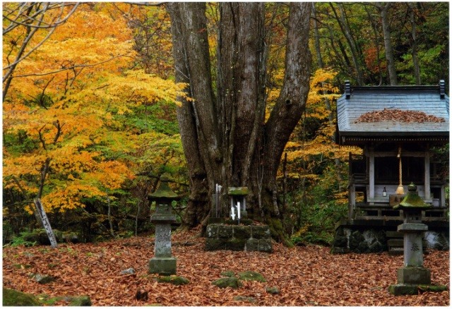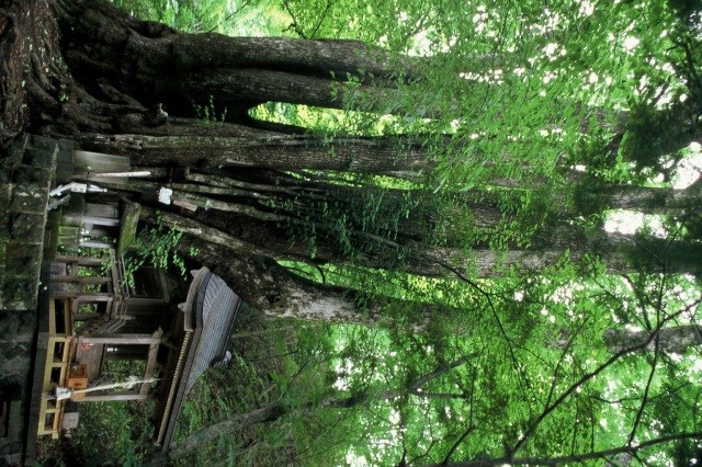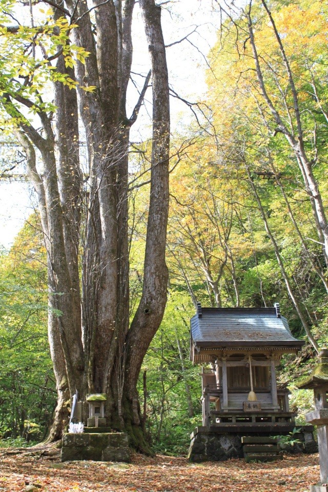 けんかつらじんじゃ推定樹齢370年、樹高45mの桂の大木で、霊験あらたかな木として、村人たちの厚い信仰を集めています。