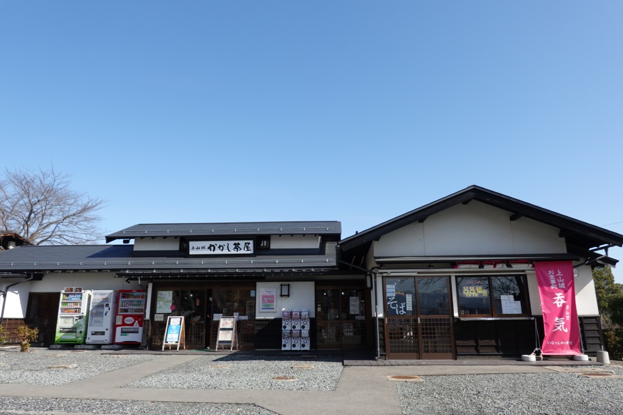 上山城売店「かかし茶屋」では、オリジナルグッズや上山市のお土産も購入できます。
