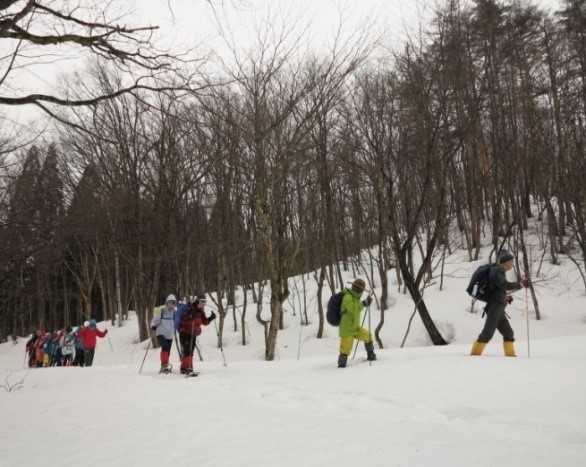 神室連邦の陣ヶ峰の麓に位置する約50haの森林公園「陣峰市民の森」で冬山散策を楽しみます。