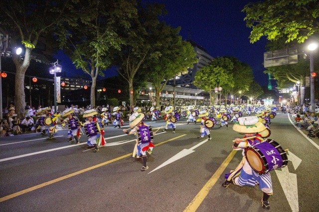 もりおかさんさおどりさんさ踊りは藩政時代から受け継がれた踊りで、その起源は「三ツ石伝説」に由来していると言われています。昭和53年から始まった「盛岡さんさ踊り」は、今ではすっかり盛岡の夏のメインイベントとして市民の中に定着し、4日間で踊り手2万人、太鼓は1万2,000個、笛は2,500人で参加者総数は3万5,000人を数えます。揃いの浴衣姿の群舞が続々と繰り出すパレードは、まさに迫力満点です。