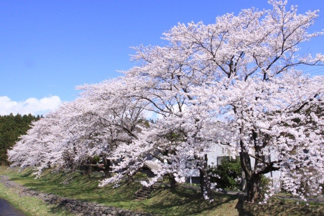 中山河川公園の桜並木(山形県遊佐町)