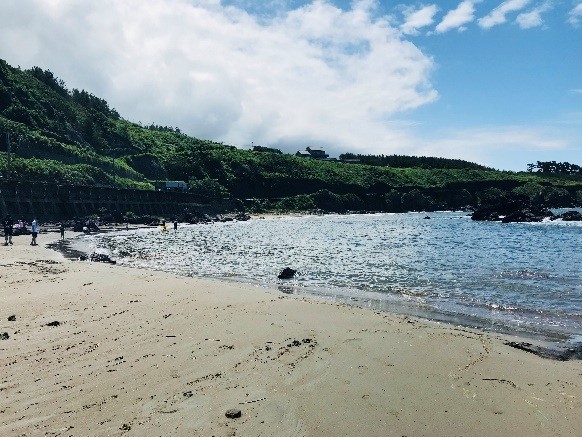 比較的小さな海水浴場ですが、砂浜から鳥海山の伏流水が湧き出ている海水浴場です。鳥海山・飛島ジオパークのジオサイトにも登録されており、海水浴シーズン以外も観光客が訪れる隠れた観光地です。