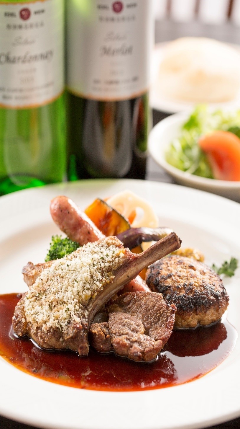 グラスに大迫特産ワインを注ぎ、焼肉コーナーなど、地元の食を楽しむことができます♪