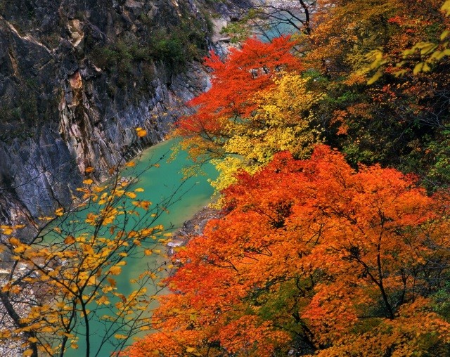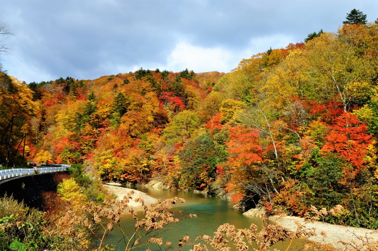 かっこんだがわのこうよう十和田八幡平国立公園の一角を占める葛根田川の上流部にあり、国指定天然記念物に指定されている景勝地「玄武洞(玄武の大岩屋)」から「滝ノ上温泉」までの約10kmの渓谷沿いが紅葉に彩られます。周辺には約8000haのブナ原生林が広がっており、ブナの黄色にモミジやカエデの赤や橙色が織り混ざった、自然の織りなす美しい紅葉を楽しめます!(紅葉の見ごろ10月中旬~下旬)