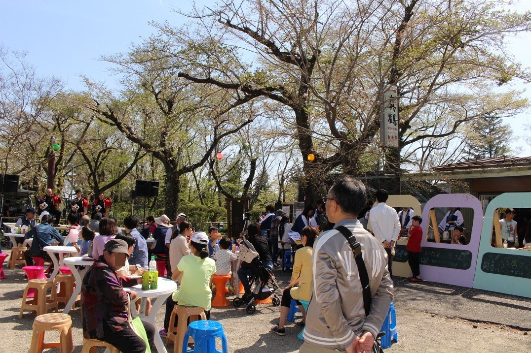 いわでやまさくらまつり桜の開花期間中1日だけのイベント。城山公園,有備館の森公園,岩出山地区公民館を会場に各種テナントが並ぶマルシェ、プロジェクションマッピングやステージショーなど開催されます。