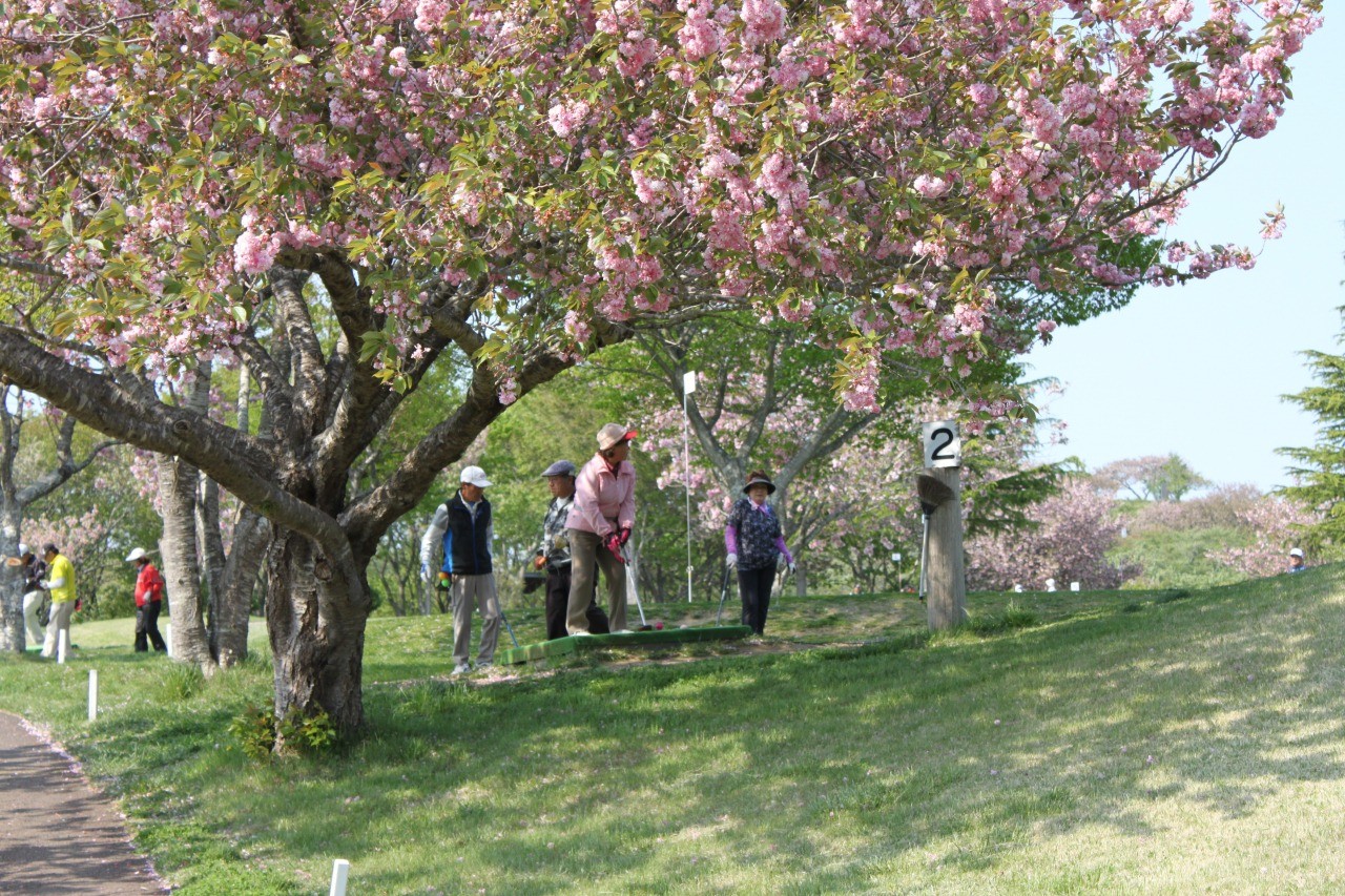 ぱーくごるふぜんこくこうりゅうたいかいさくらかっぷ加護坊山の南側斜面に広がるパークゴルフ場で5月中旬に開催される大会です。自然の地形を活かした9ホール×6コース計54ホールで,規模は県内最大で全国でも屈指の人気コースです。加護坊山は標高224mの豊かな緑に囲まれた山で,山頂からは360度のパノラマを見渡すことができます。