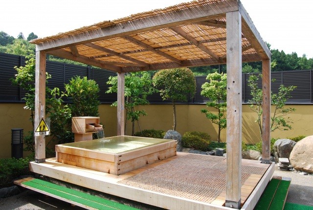 県内最大級の広さの露天風呂は,全身浴,半身浴,寝湯の3段階の深さが特徴です。