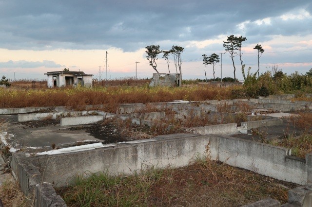 しんさいいこう せんだいしあらはまちくじゅうたくきそ荒浜地区は仙台市東部沿岸地域でも、海岸に近く形成された集落の一つでした。東日本大震災で津波の被害を受けたその地に、かつてあった住宅の基礎が震災遺構として残されています。