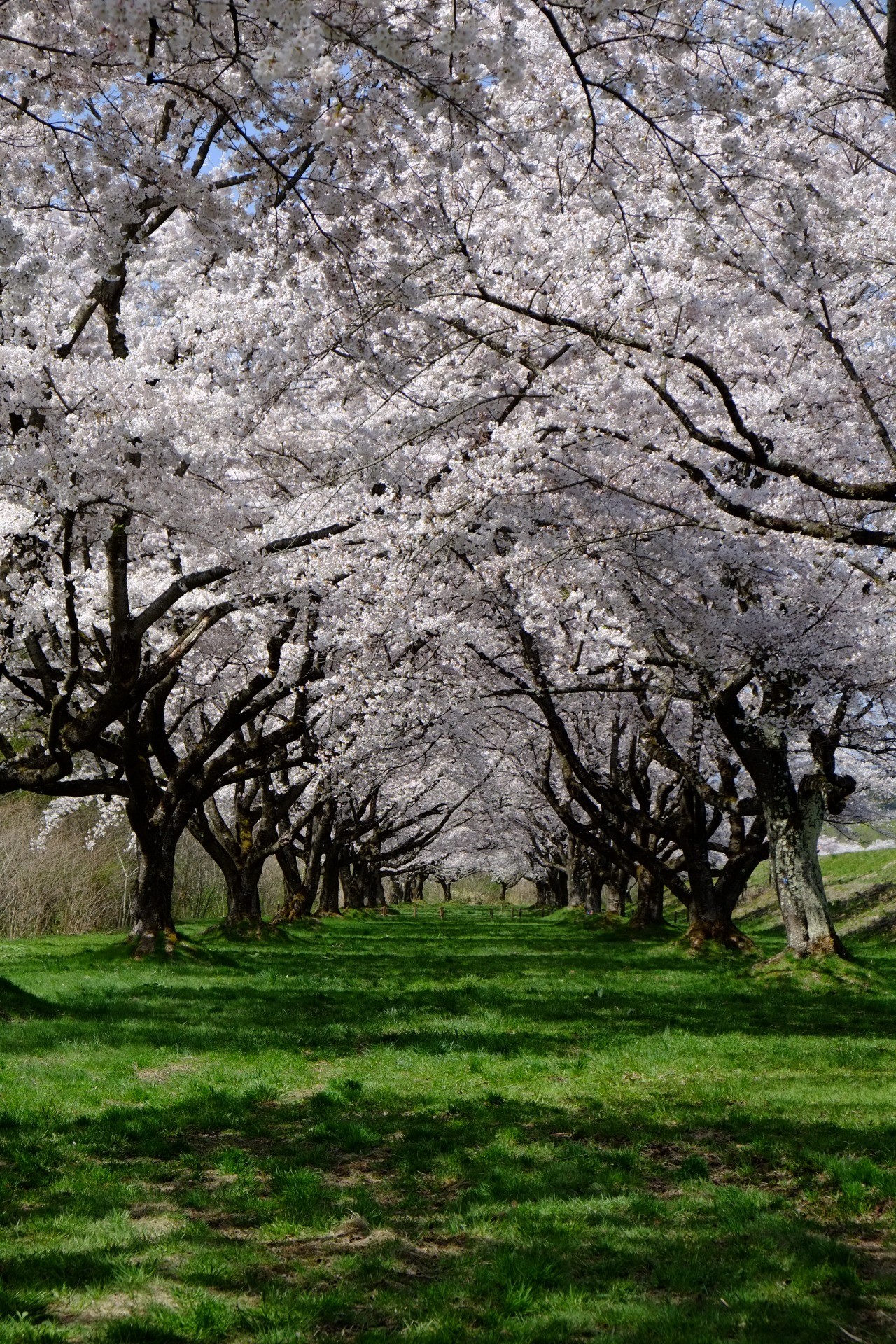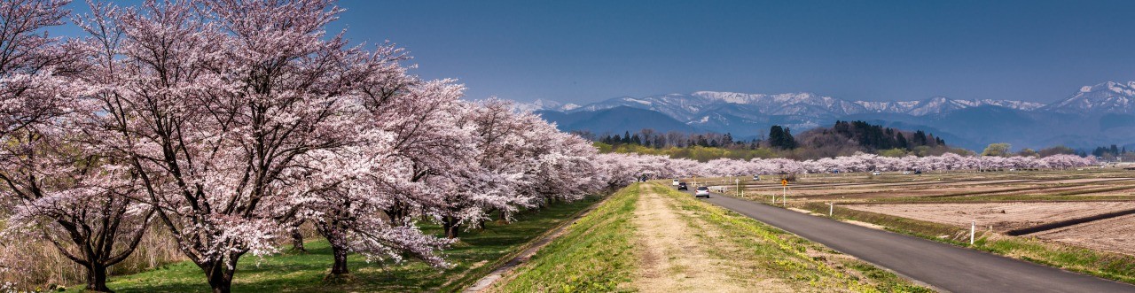 しずくいしがわえんちのさくら雫石川の堰堤沿いにある雫石川園地は、約150本のソメイヨシノが1.5Kmにわたって続く、ここ数年人気上昇中のお花見スポットです。桜並木の中はもちろん、堰堤沿いに歩けば目の高さで桜を眺めることができます。また、岩手山から秋田駒ヶ岳まで続く山々のスカイラインと桜のコラボは必見! のんびり桜を楽しみたい方におススメです。