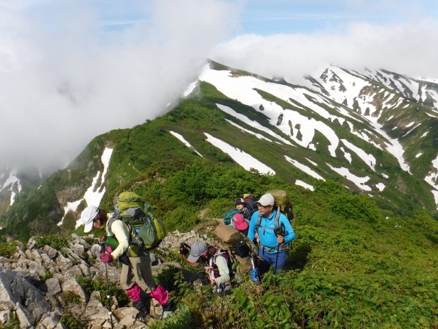 日暮沢口~竜門山~大朝日岳~古寺口の縦走コースです。大朝日山頂小屋で一泊します。