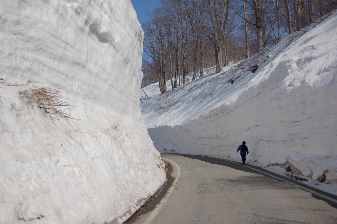 がっさんゆきのかいろううぉーきんぐ4月中旬から5月上旬にかけて、月山志津温泉から「月山スキー場」までの道路は、見上げる程の雪の壁が現れます。つづらおりの道はまさしく雪の回廊。高さ10mにも及ぶ、この回廊の迫力をぜひ、ご体感ください。
