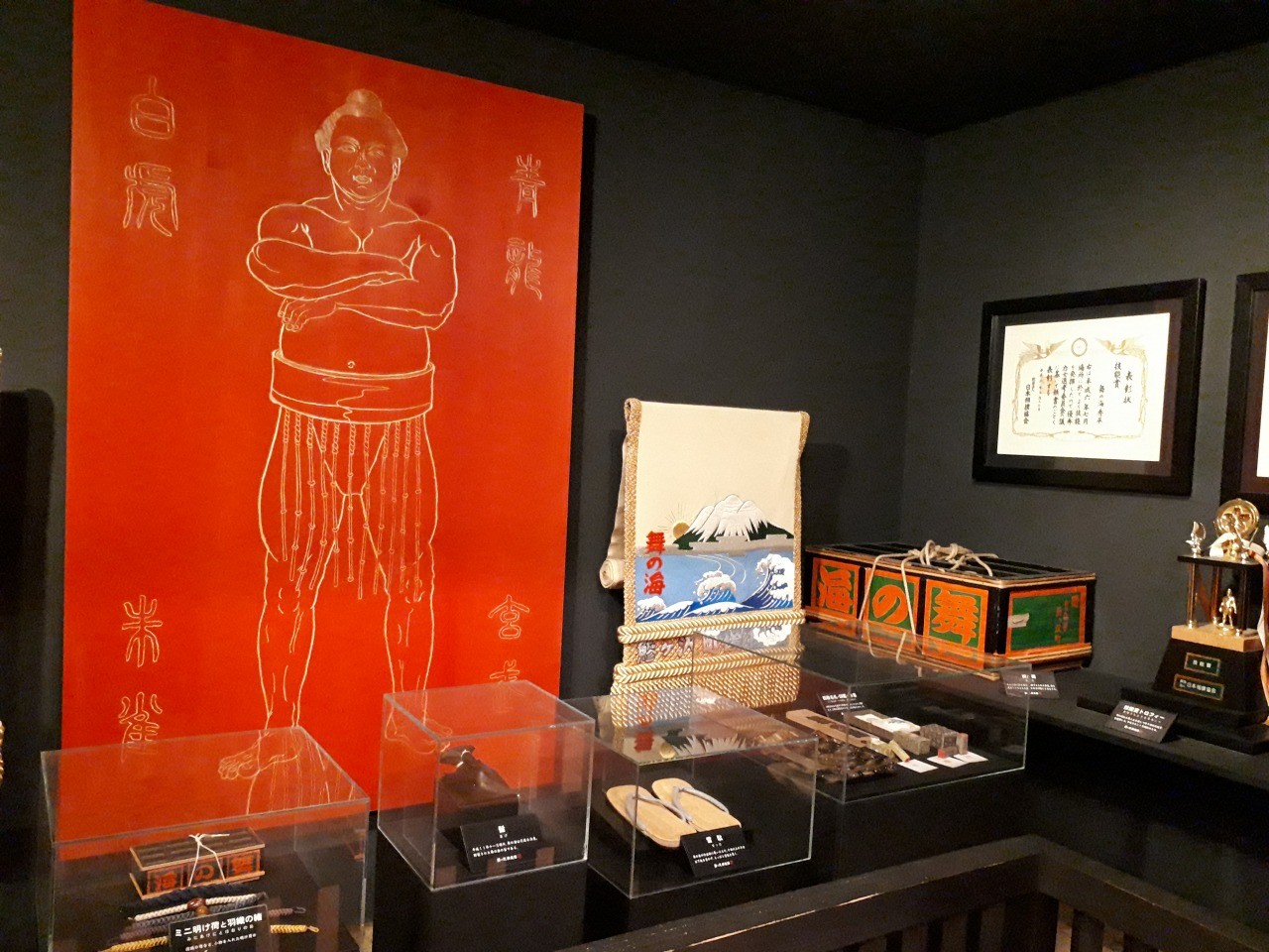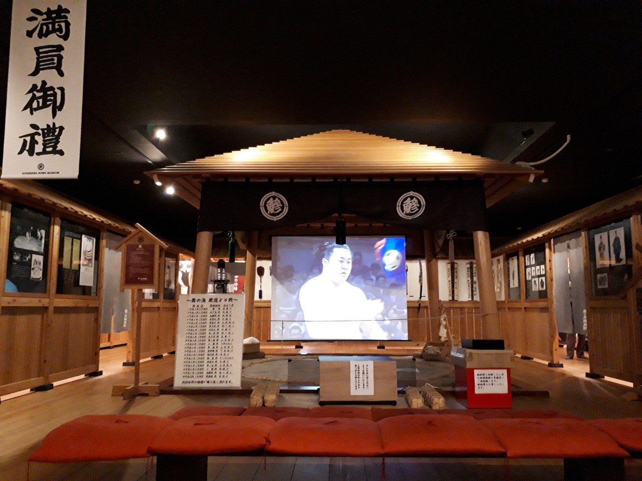 あじがさわすもうかん~まいのうみふるさとさじき~ (していかんりしゃ:あじがさわかんこうきょうかい )技のデパートと言われた元小結舞の海が生まれ育った鰺ヶ沢町は、昔から相撲が盛んな地域です。