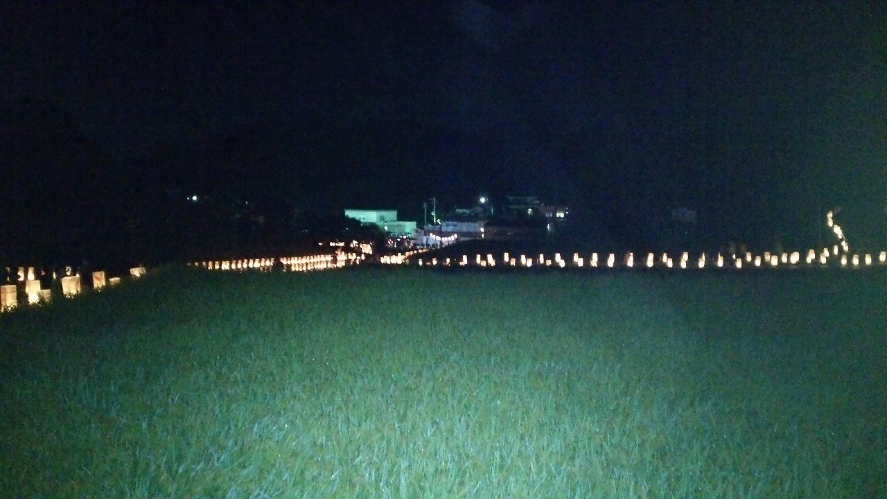 一時は最後の一戸が生産をやめ、歴史が途絶えてしまいました。しかし、平成10年、海老根伝統手漉和紙保存会の手で復活し、福島県の伝統的工芸品に指定されました。この海老根伝統手漉和紙で作られた灯篭を使って行われるこのお祭りでは、灯篭の数が毎年少しずつ増え続け、現在では約千個もの灯篭が使用されております。独特の色が特徴の光のページェントが、海老根の里の夜をほのかに映し出します。