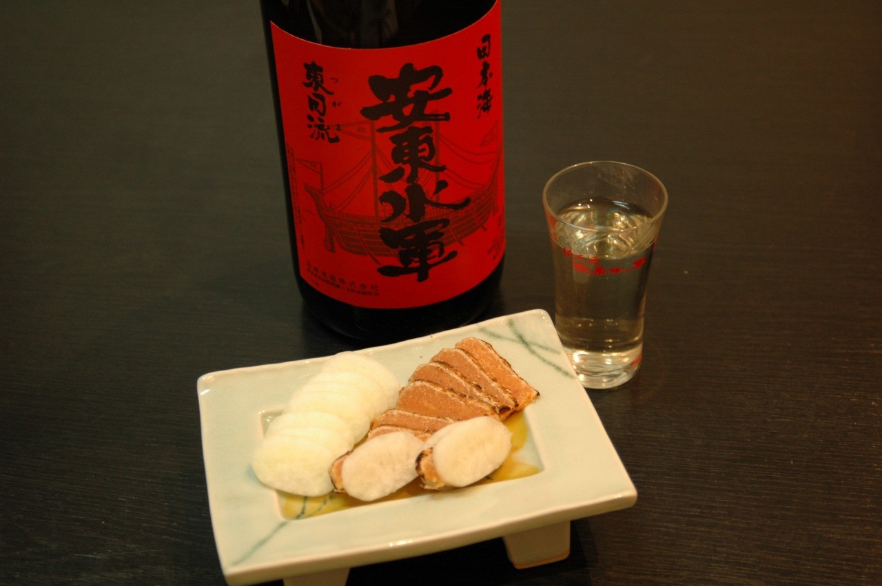 昭和63年、尾崎酒造が新たな純米酒として発表し、今では青森県内の酒店や居酒屋、お土産売り場等では常連となっています。名前の由来は、その昔、十三湊で交易により栄えたとされる「安東水軍」にちなんで名づけられました。