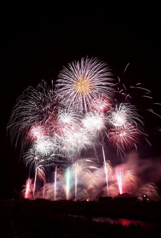 なかでも女流花火師の競演や、市内中学校合唱部の歌声に合わせて打ちあがるプログラムは必見です。