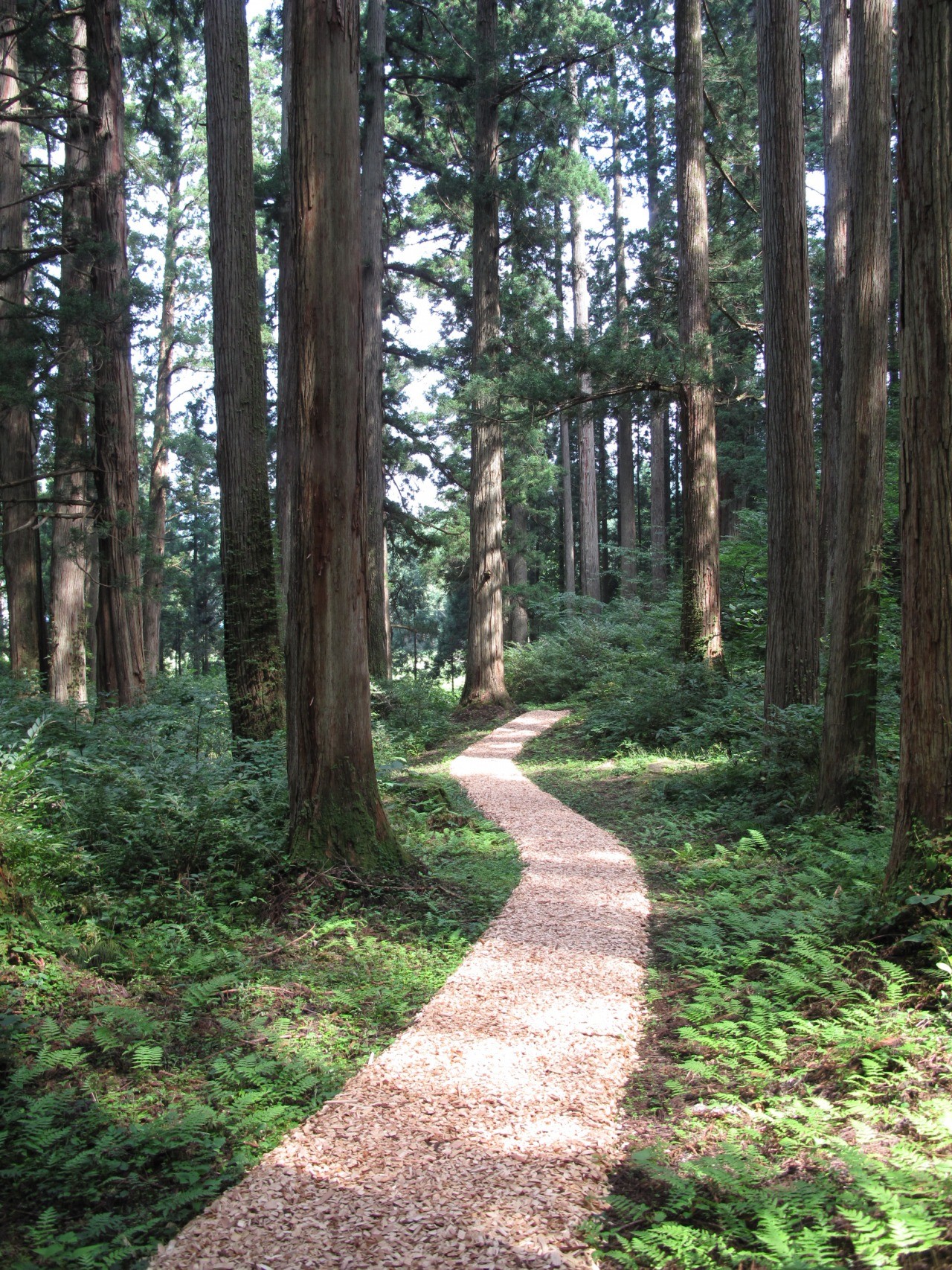 (かねやままち)まちなかさんさく「かねやますぎとまちなみをたのしむ」藩政時代から植林が行われてきたとされ、秋田杉と並ぶ銘木と自負する長伐期大径木の金山杉。大美輪にある大杉は樹齢約280年と言われ、国内最大級の美林が広がる。 ウッドトラス金山には伐採された木材が山積みされており、インスタ映えスポットとなっている。羽州街道宿場町の風情が残る懐かしい街並みは、白壁と切り妻屋根が特徴の「金山住宅」や蔵が立ち並び、鯉が泳ぐ農業用水路「大堰」のせせらぎなど、落ち着いた雰囲気の中を街並み案内人がご案内します。特に「きごころ橋」は金山大橋に隣接した歩道橋で金山杉と金山職人の技が見事に活かされ、金山の自然と景観が調和されている。きごころ橋にほど近いところに「岸家具店」がある。家具の販売店主から木工職人へと変身を遂げた岸さんが作る「かねやま杉木口寄せプレート」は廃棄される樹齢100年以上の金山杉の端材を材料として使用しているとても人気の商品である。「草々」にて木口寄せプレートを活用してオブジェづくり体験、抹茶とお菓子で休憩。 明治11年、英国の女性旅行作家イザベラ・バードが、著書「日本奥地紀行」の中で金山町を「ロマンチックな雰囲気」と称しました。現在も白壁の家並みや石積の水路など落ち着いた街並みが旅人をもてなします。夜は、ライトアップも楽しめます。(4月下旬~10月末)