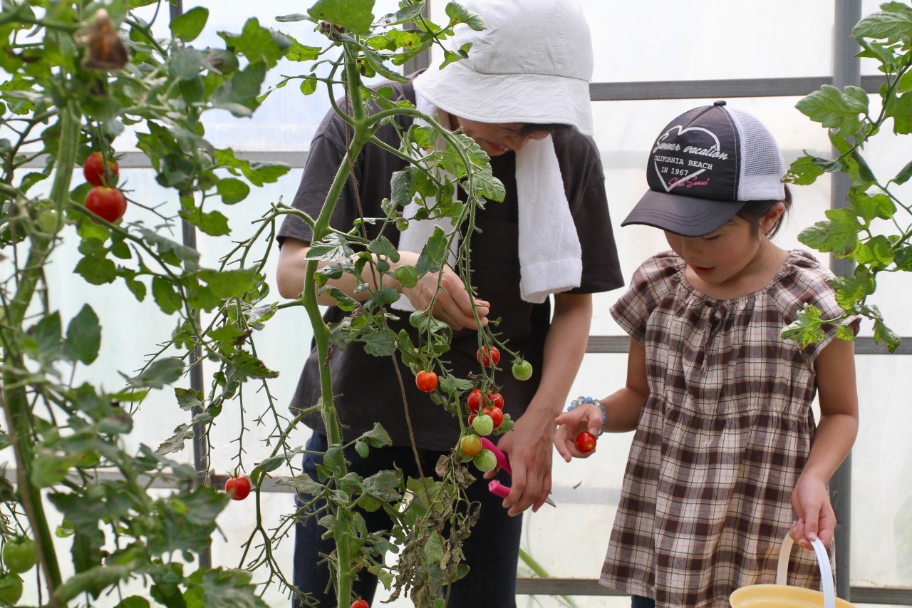 【なつのどにちげんてい!】いわきのうえんの5しょくのみにとまとがり山田町民からも人気のいわき農園のミニトマト狩りを夏限定で行っています。
