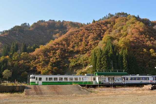 - 要害山:只見駅前広場に大型バス3台、普通車20台