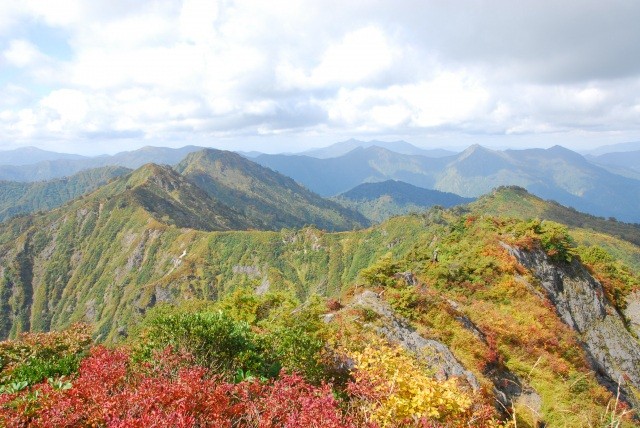 会津のマッターホルンといわれる蒲生岳をはじめ、そこにはブナ林や雪食地形(せっしょくちけい)などが見られ、豪雪地帯只見を特徴づける景観をその山容に見ることができます。