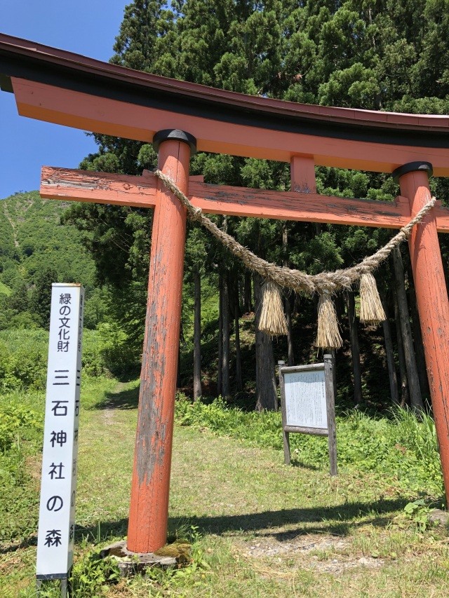 みついしじんじゃ一の岩、二の岩、三の岩があり、本殿である三の岩にあいた穴に親指と小指で5円玉を通した「こより」を結ぶと良縁が結ばれるとされている。