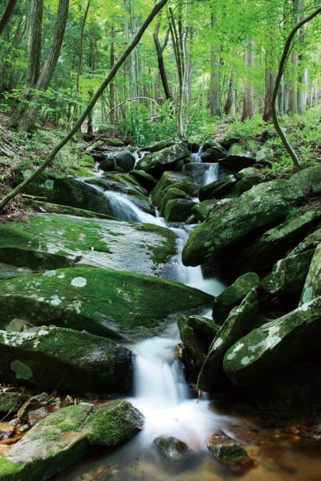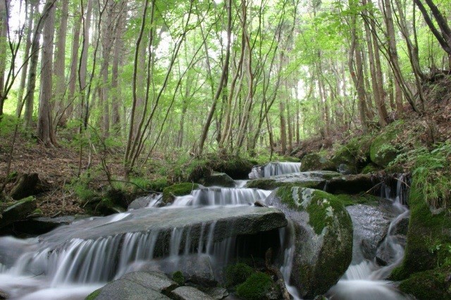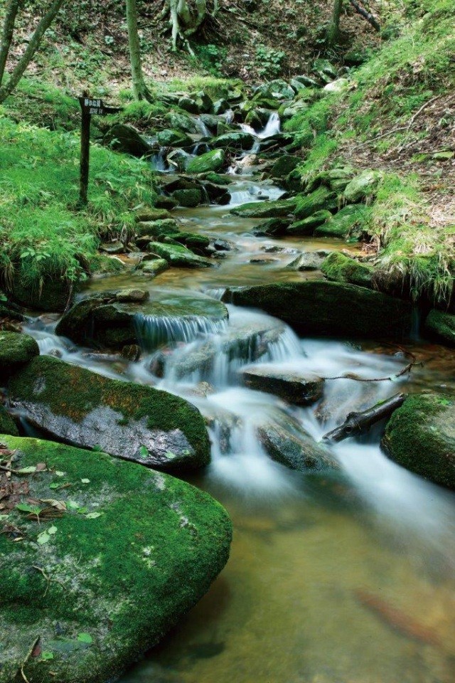ひがしののせいりゅう阿武隈山系の西斜面、標高500m以上の高地に位置し、四季を通じて高原吹くさわやかな風と清流のせせらぎが心地よく、小鳥のさえずりが心を和ませてくれます。遊歩道そばには大小さまざまな滝があり四季折々の表情に癒されます。夏は新緑、秋は紅葉の真紅に彩られた見事な景観が楽しめます。