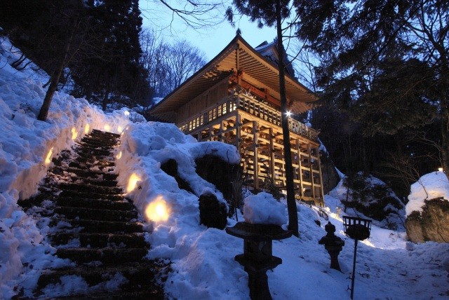 また、参道から神社の山肌にかけて雪燈籠を灯す「高岩神社万燈夜」も合わせて行います。神秘的な風景が見どころです。