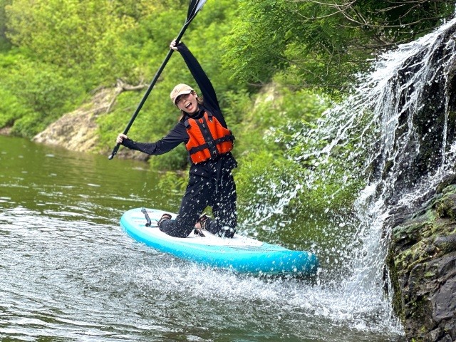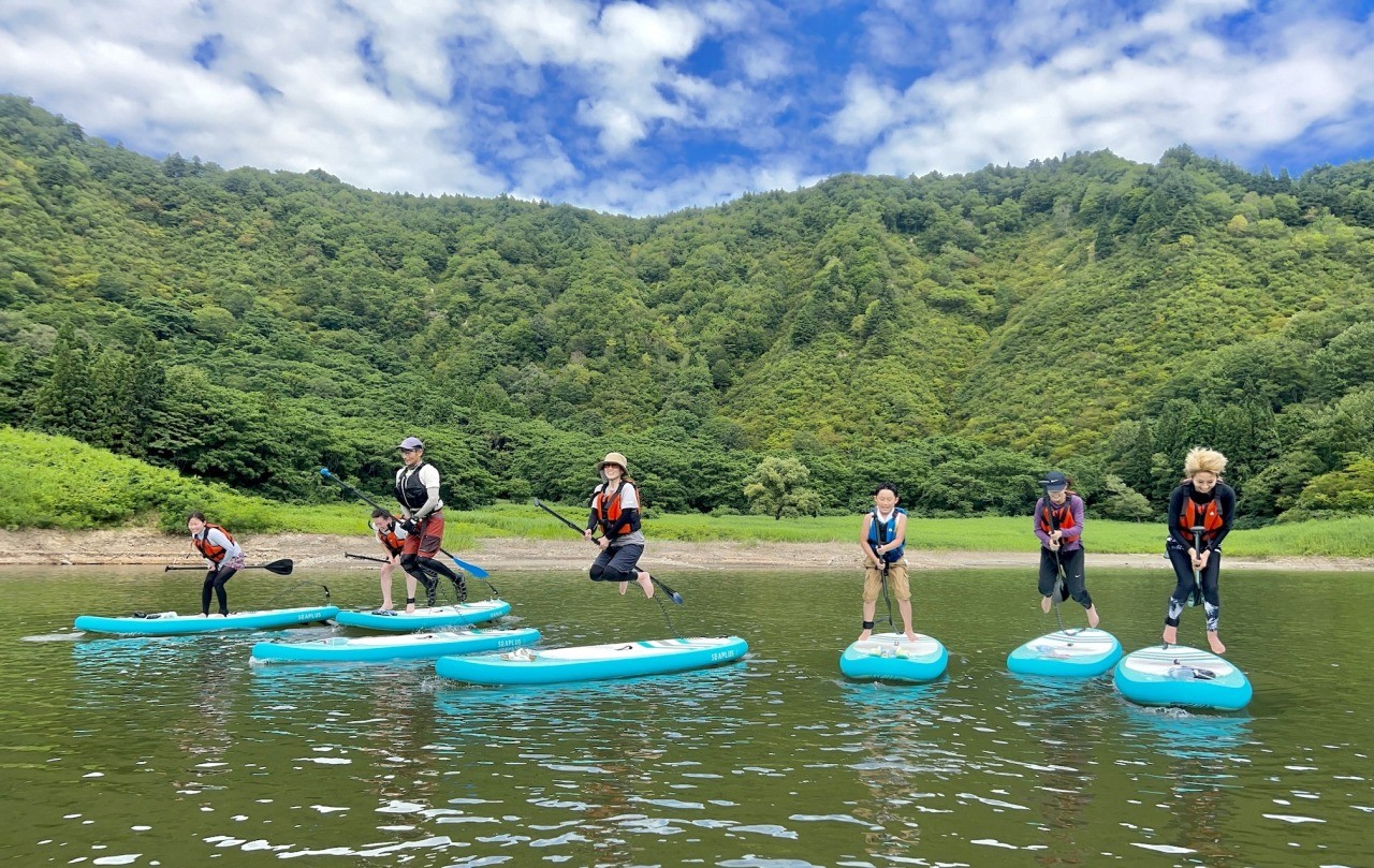 しらかわこさっぷつあー【6月〜9月】大自然に囲まれた白川湖の中で楽しむ、SUP体験ツアー。初めての方でもガイドが乗り方からサポートしますので安心。自然に包まれるの癒しの2時間を。 乗り方からレクチャーしますので、全く経験のない初心者、友達どうしでも安全に楽しくトライすることができます。 バランスを崩して水の中にひっくり返るのもSUPの楽しさのひとつですが、そこは天候気温に応じてガイドしますのでご安心ください。