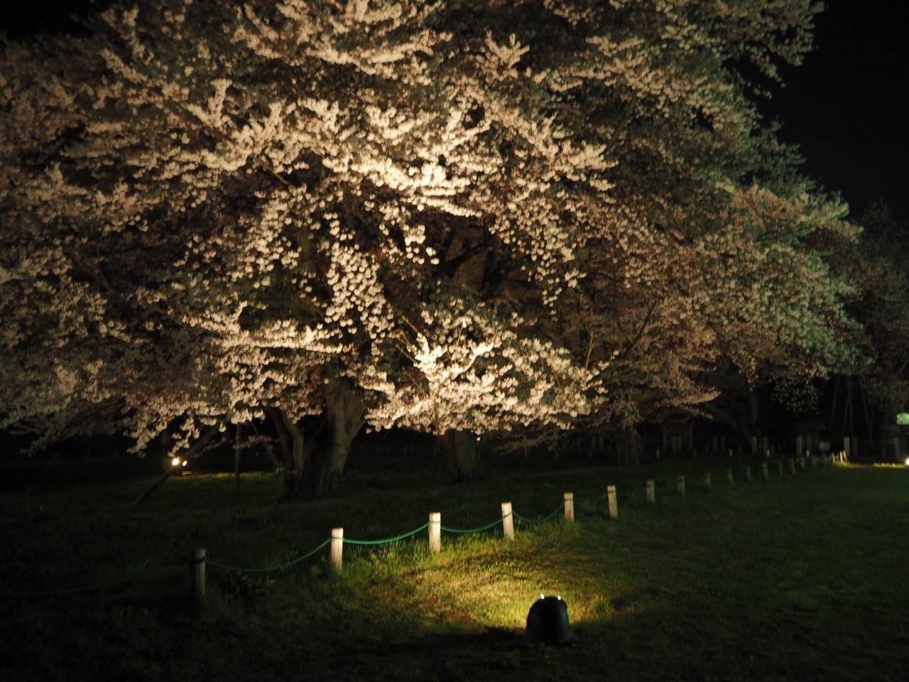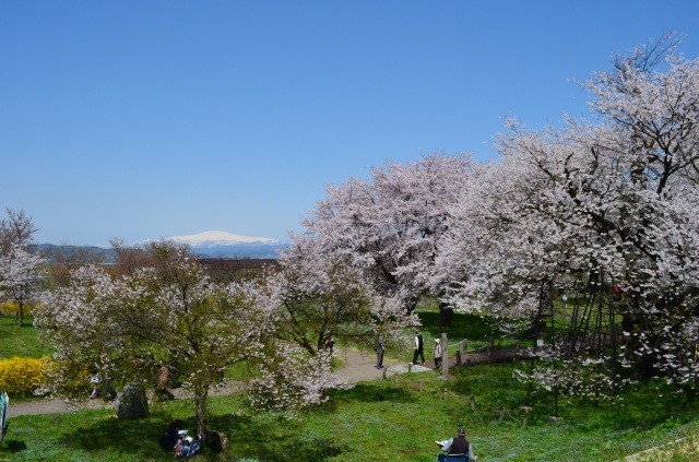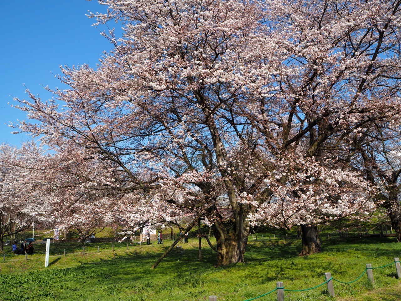 おだるまのさくらこうえん中山町の南部、達磨寺地区より東方1.3km程の須川左岸に位置する、お達磨の桜公園内に立つ2本のエドヒガン。樹齢は推定750年といわれており、樹高約12m、幹の太さは子供7人が手を繋げるほどで、幹囲約5.4m。山形県天然記念物にも指定されています。お達磨の桜の公園内には、エドヒガンのほか、シダレザクラなど34本があり、満開の桜と残雪の山々が織りなすコントラスト、夕暮れやライトアップで様々な表情を見せる桜たちが、多くの人々を惹きつけます。