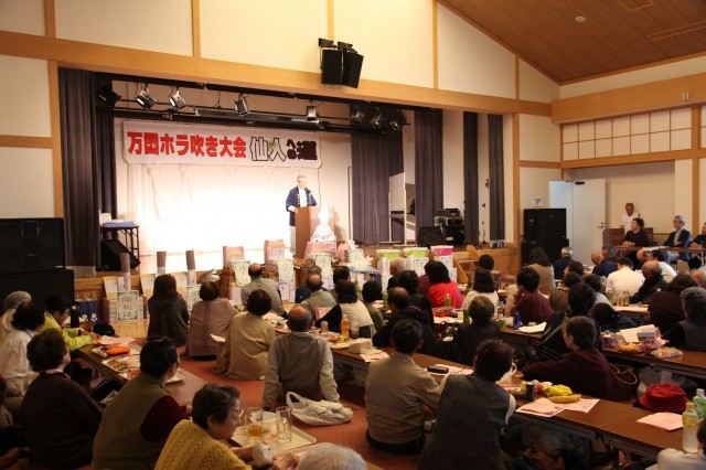 その後、会場を移し、県内外から集まったホラ吹き自慢によるホラ吹き大会が開催されます。1人につき5分間の持ち時間でいかに大法螺を吹くかを競い、会場は爆笑の渦に包まれます。