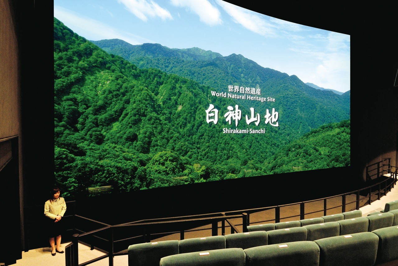 映像体験ホールでは、デジタルプロジェクターを使用し、巨大スクリーンで圧倒的な迫力と臨場感あるサウンドや映像で白神山地の四季を観賞ことができます。白神山地のブナのすごさ、すばらしさが分かるはずです。